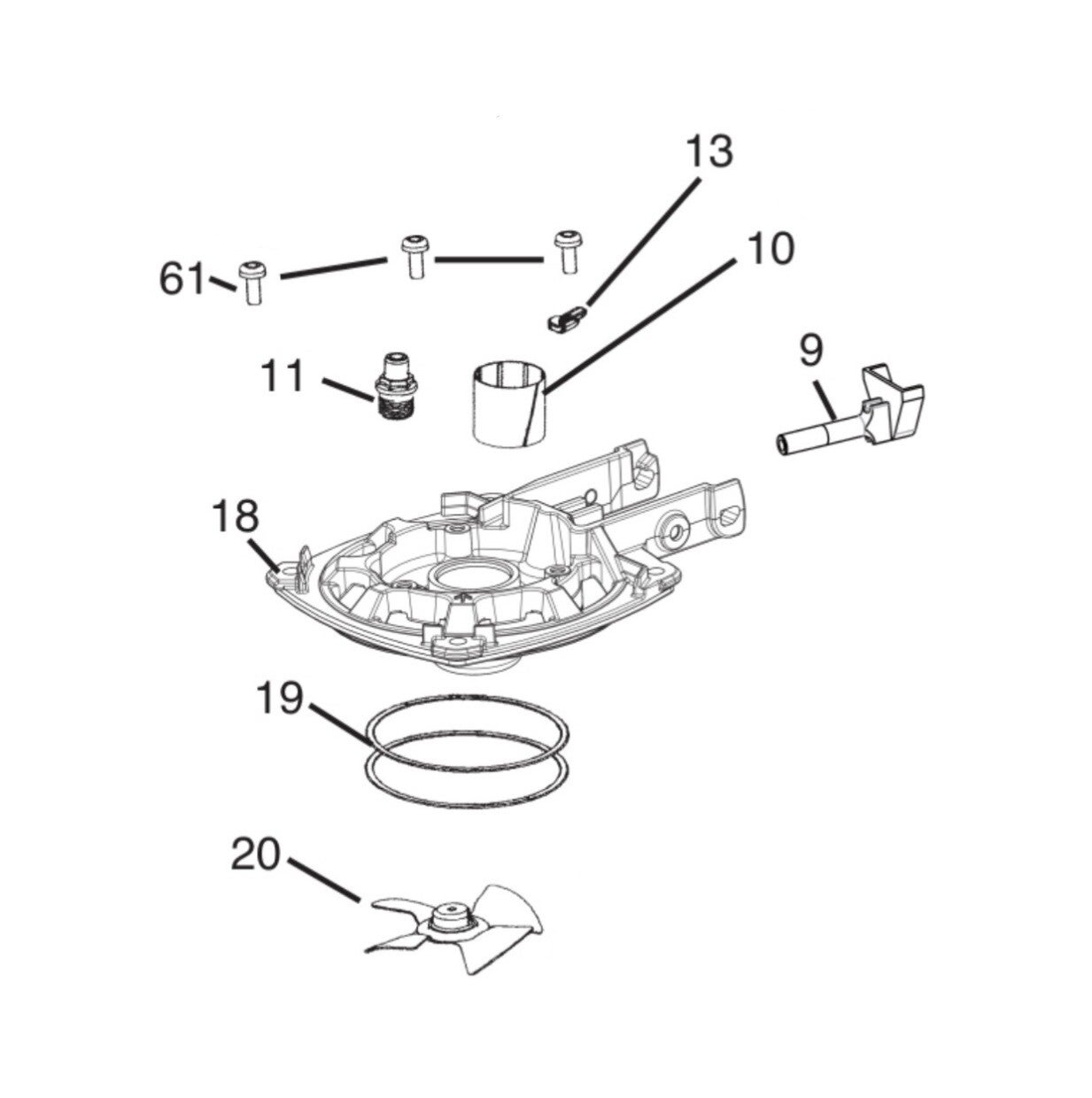 Paslode 014880 Cylinder Head for IM350+ including 900935 Metal Seal O-Ring, 403167 Fan Blade, 219430 Fan Motor Assy, 401356 Motor Sleeve, 900286 Spark Plug Assembly, 900596 Sems Screws